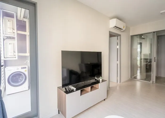 1个卧室的公寓位于素坤逸地区. 客人还可以在JP French Restaurant享用欧洲佳肴,从公寓走15分钟就到. 它距离泰国文化中心地铁站仅有几步之遥,靠近Subhashok The Arts Centre.